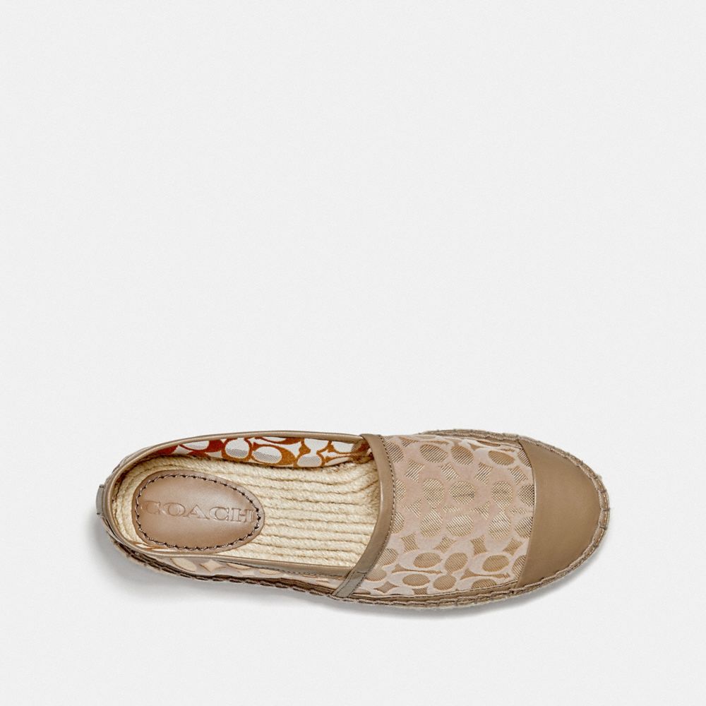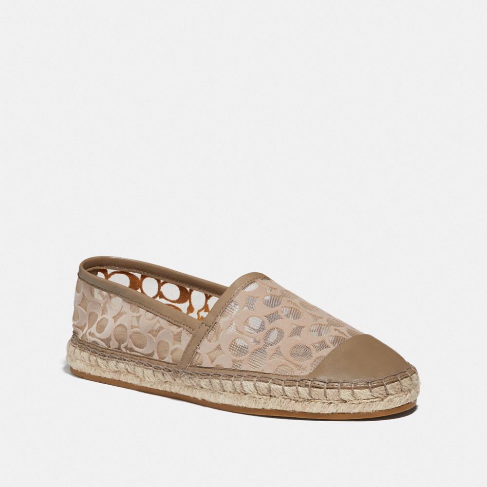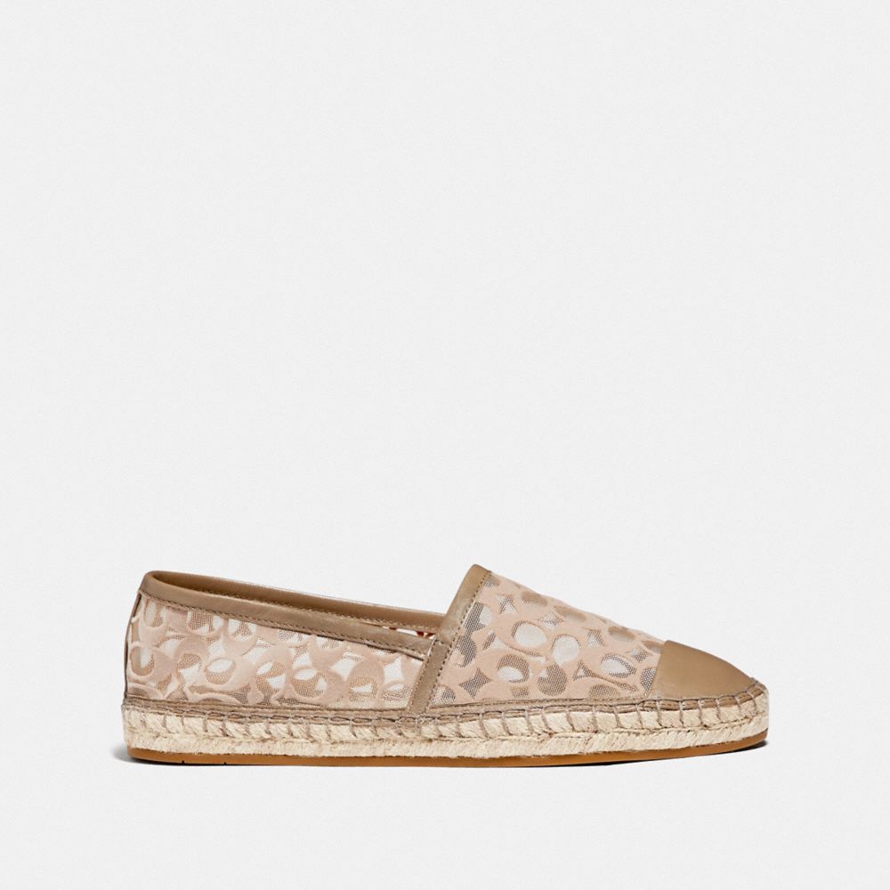 A new take on a warm-weather essential, this laidback espadrille is crafted of smooth leather and breathable mesh flocked with our Signature. The comfortable slip-on design is finished with bi-color woven jute trim and a rubber sole for great traction on city streets and country lanes.