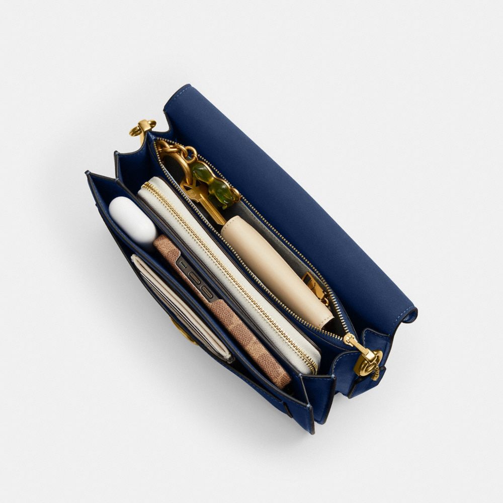 COACH®,Tabby Shoulder Bag 26,Calfskin Leather,Shoulder Bag,Embossed,Metal,Logo,Compact,Brass,Day Party,Navy,Inside View,Top View