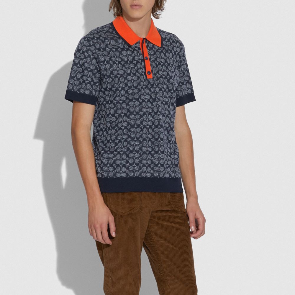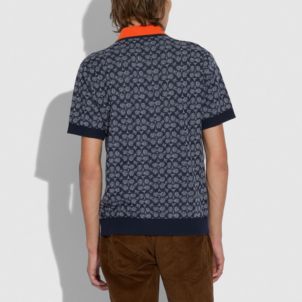 Add our Signature to your style, this rib knit polo is a modern take on a vintage-inspired style in a soft chambray hue featuring our iconic Signature. The classic-fit silhouette is finished with a contrast pointed collar and button placket for a pop of color.