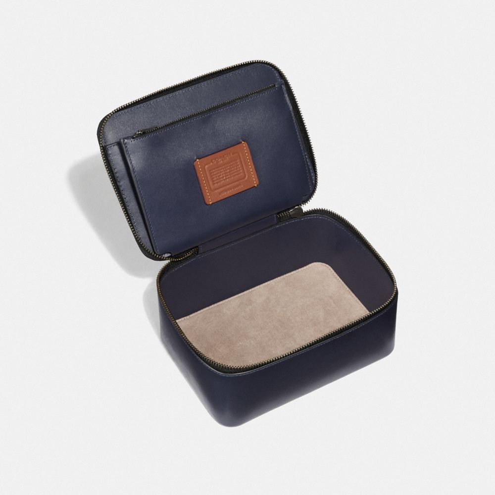 Great for bulky headphones, chargers, cables and batteries or an iPad Mini, our Tech Organizer keeps on-the-go needs all in one place. Made from refined calf leather, it has a zippered center divider to securely store ear buds, flash drives, cards, and small accessories.
