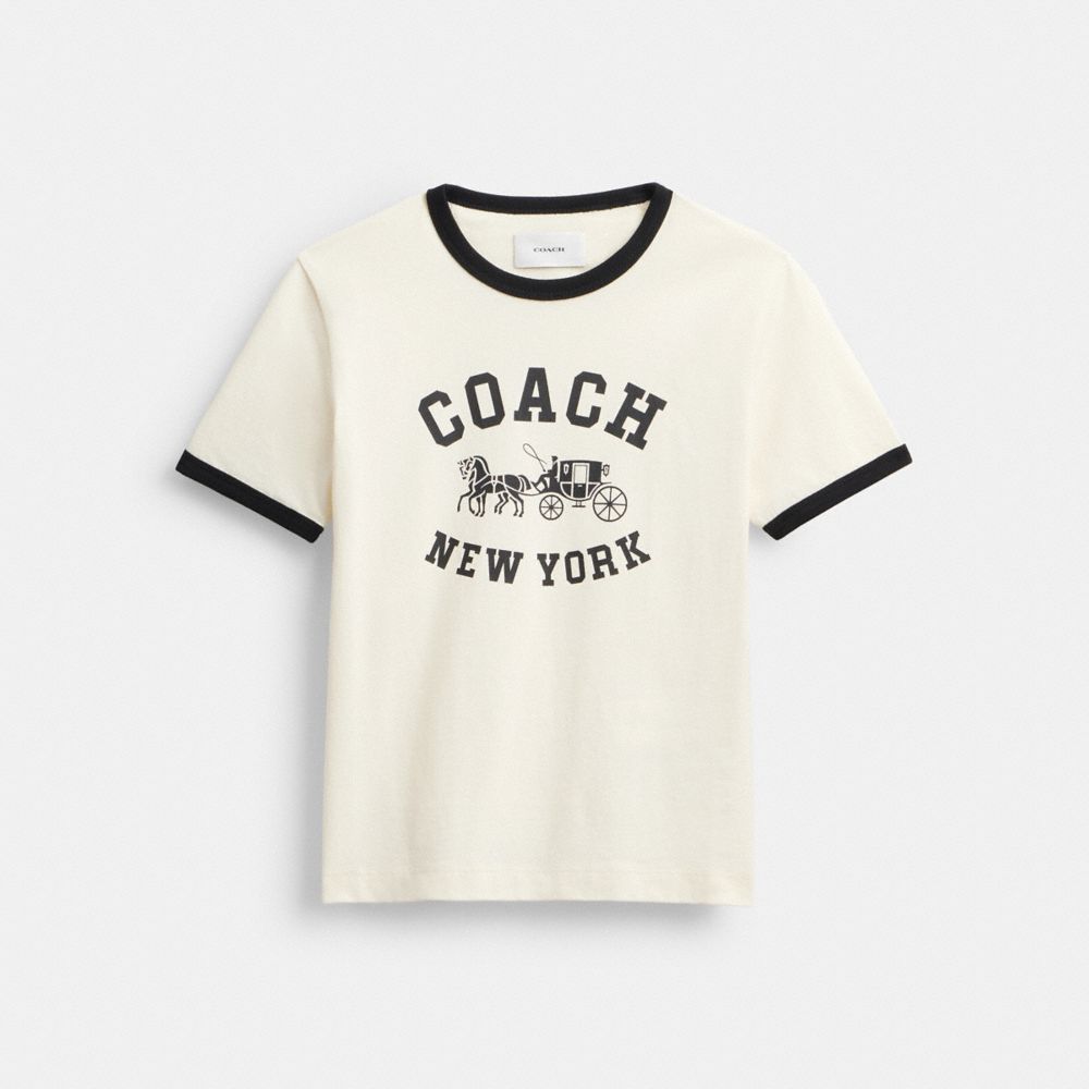 Featuring our Coach graphic and iconic Horse and Carriage motif front and center, this classic-fit ringer T-shirt is finished with contrast binding trim. Crafted of organic cotton made without the use of harmful chemical fertilizers and pesticides, it’s inspired by our commitment to rethinking and reducing our impact on the planet.